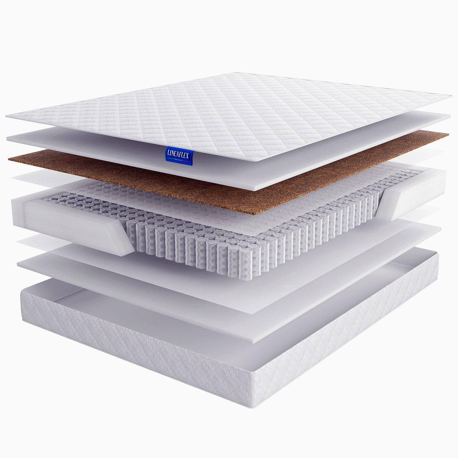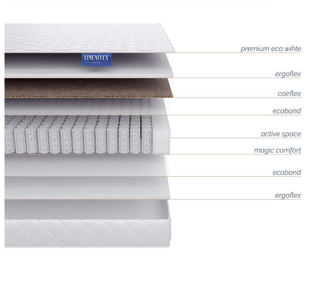 Характеристики: Жесткость: комбинированный Нагрузка, кг: 120 Пружинный блок: независимый Высота, см: 21 Внешняя система комфорта: Чехол Premium Eco White - белоснежный жаккард + гипоаллергенный наполнитель Skyfiber. Несущая система: Active Space – пружинный блок Magic Comfort (500 пружин на спальное место), армированный по системе Ecobond и высокоэластичная пена Ergoflex по периметру матраса. Комфортные слои: Верхняя сторона: Ergoflex (2 см) – высокоэластичная пена на водной основе. Coirflex (1 см) – латексированное кокосовое волокно. Нижняя сторона: Ergoflex (2 см) – высокоэластичная пена на водной основе. Онлайн заказ, доставка по всей России, стоимость доставки в цену товара не входит.