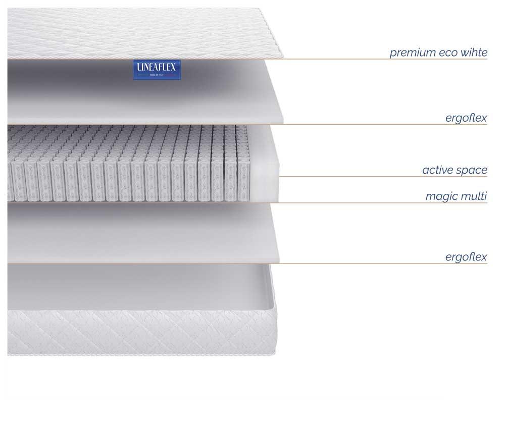 Характеристики: Жесткость: мягкий Нагрузка, кг: 140 Пружинный блок: независимый Высота, см: 19 Внешняя система комфорта: Чехол Premium Eco White - белоснежный жаккард + гипоаллергенный наполнитель Skyfiber. Несущая система: Active Space – премиальный пружинный блок Magic Multi. Благодаря более высокой упругости, обеспечивает сверхсенсорную поддержку позвоночника и еще эффективнее распределяет весовую нагрузку. На спальное место приходится 1000 пружин Spring HD. Комфортные слои: С каждой стороны Ergoflex (2 см) – высокоэластичная пена на водной основе. Для расчета стоимости матраса нужного вам размера, напишите нам (кнопка "Заказать"). Онлайн заказ, доставка по всей России, стоимость доставки в цену товара не входит.