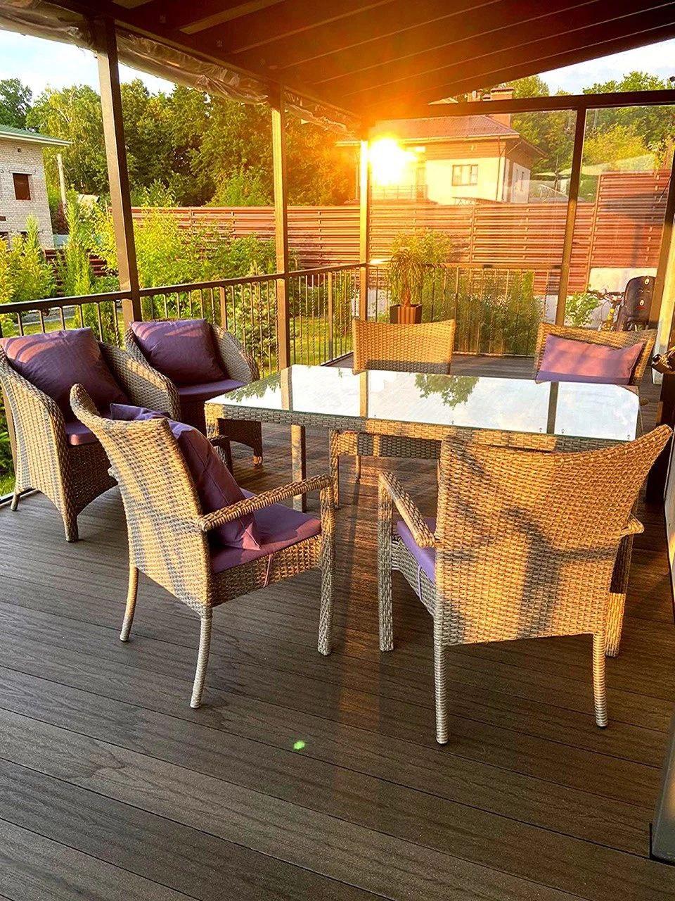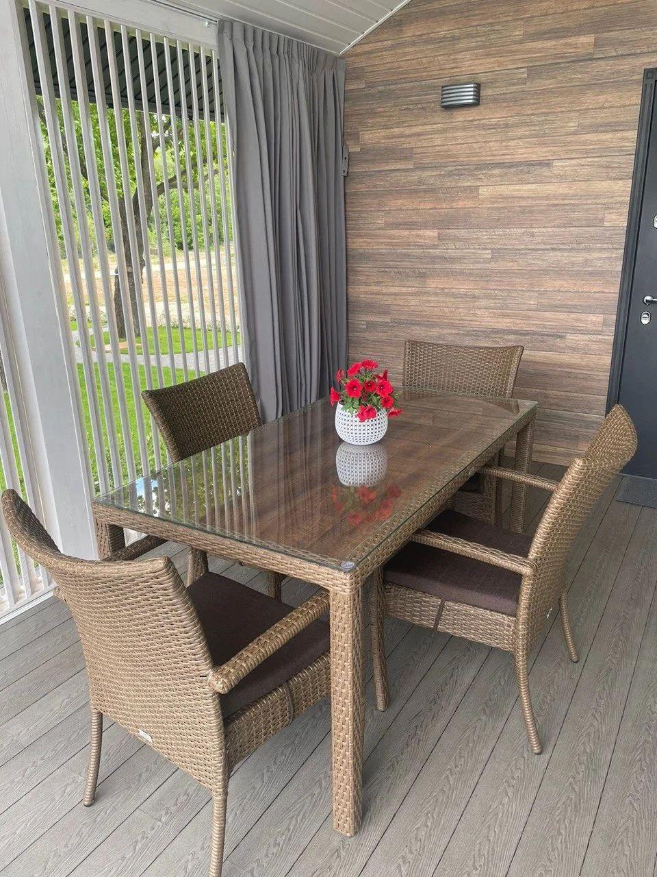 Габариты: 630Х650Х850 мм Плетеное кресло "Terlago" отлично подойдет для обустройства зоны отдыха под открытым небом, в беседке, на веранде, террасе или кафе. Каркас мебели сделан из металла, (на который нанесено двухслойное порошковое покрытие), который выдерживает большие нагрузки, оплетенного вручную из высококачественного искусственного ротанга. Ножки кресла закрыты пластиковыми наконечниками, защищающими пол от царапин. Подлокотники, высокая спинка и широкое сиденье с мягкой подушкой позволяют комфортно расположиться на кресле, расслабить спину и руки. Искусственный ротанг устойчив к влаге и выгоранию, легко моется, долго сохраняет первоначальный внешний вид. Кресло выдерживает высокие нагрузки. Чехол подушки сделан из водонепроницаемой ткани, при необходимости снимается для стирки. Закажите стул "Terlago" прямо сейчас!
